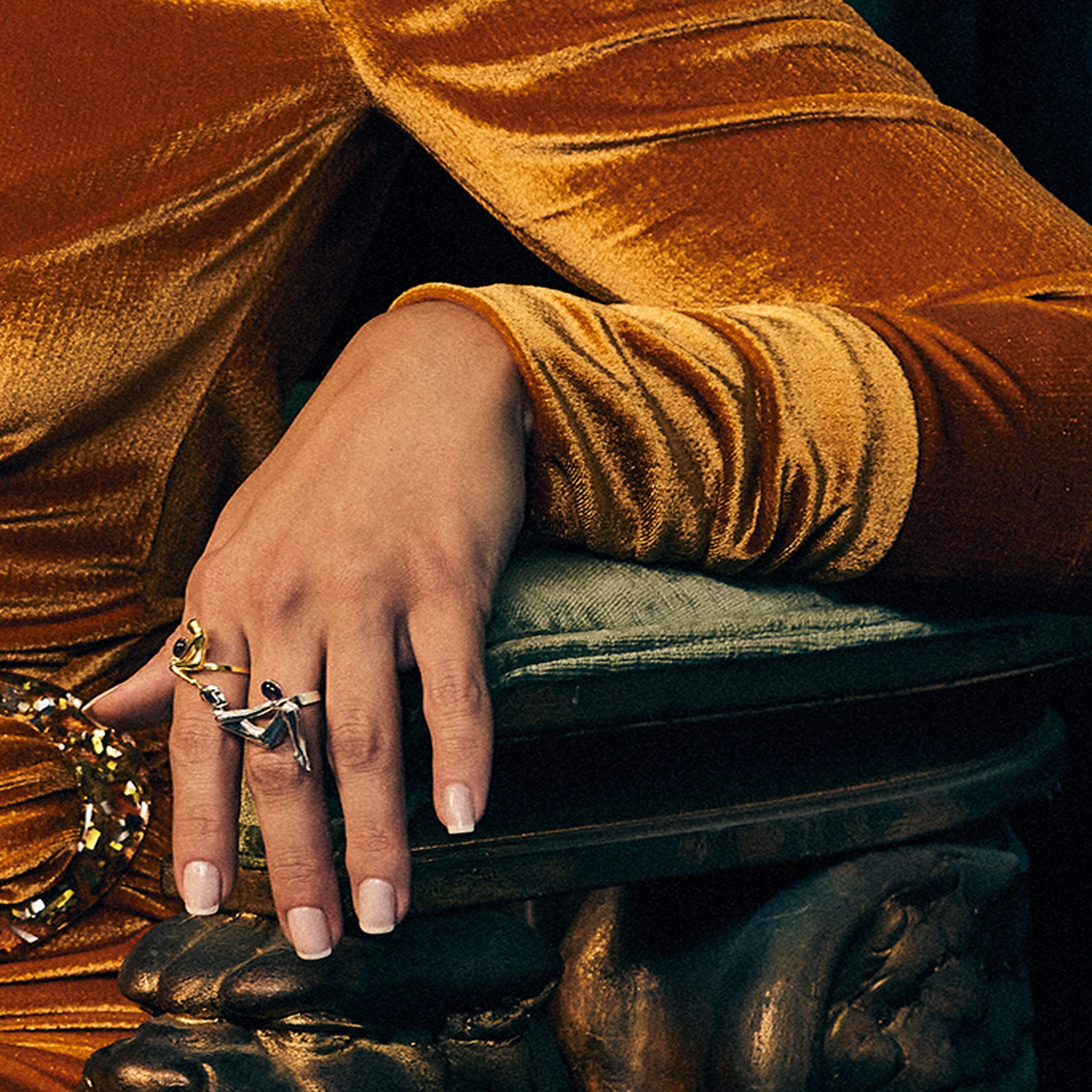 Anel Beatrice inspirado no enigma art déco, mulher empoderadora, simbólica e espiritual.