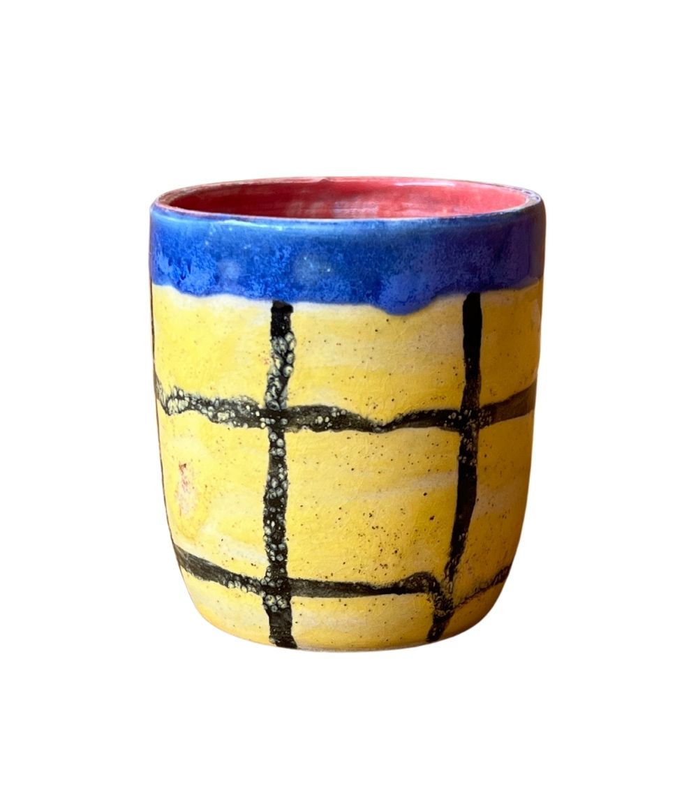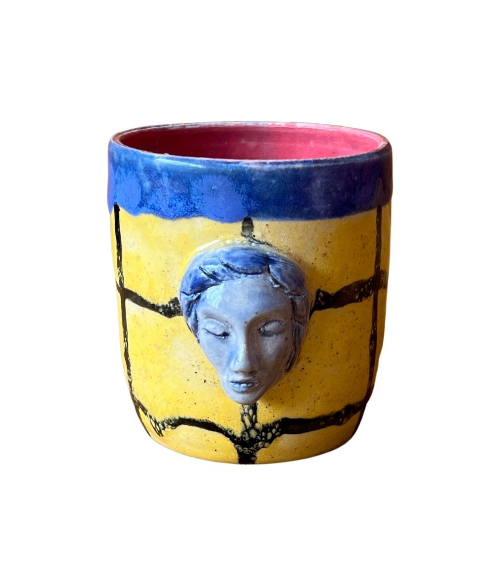 Copo feito de argila branca, esmalte de alta temperatura – apto para cozinha ou decoração.