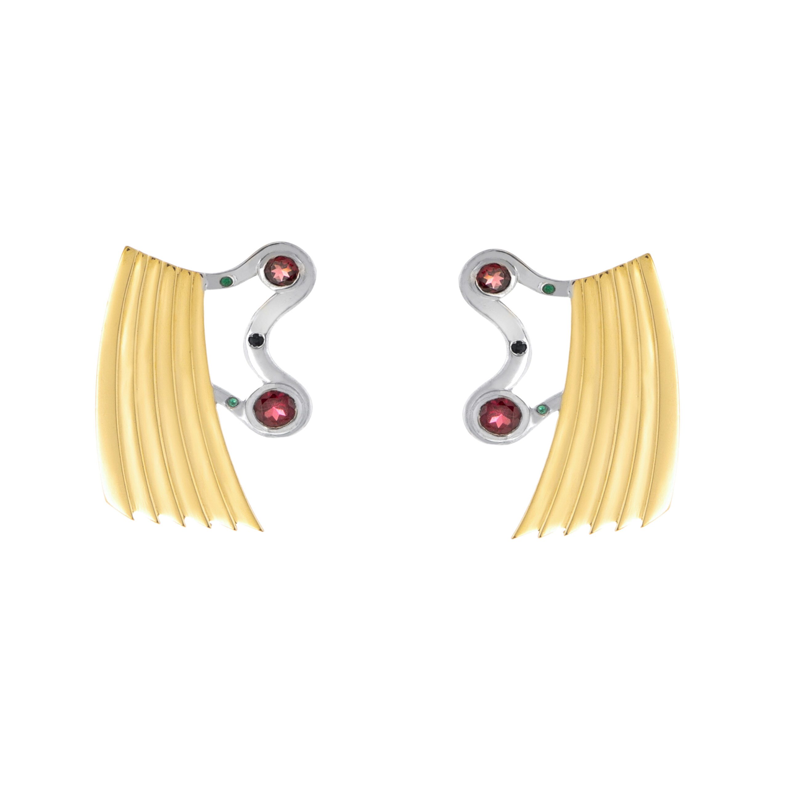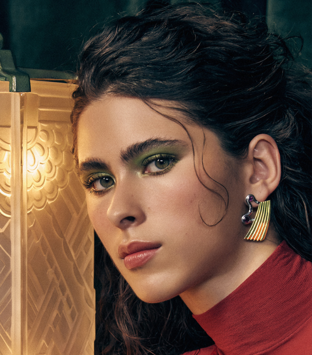 Brincos Marta inspirados em formas naturais e linhas Art Déco.