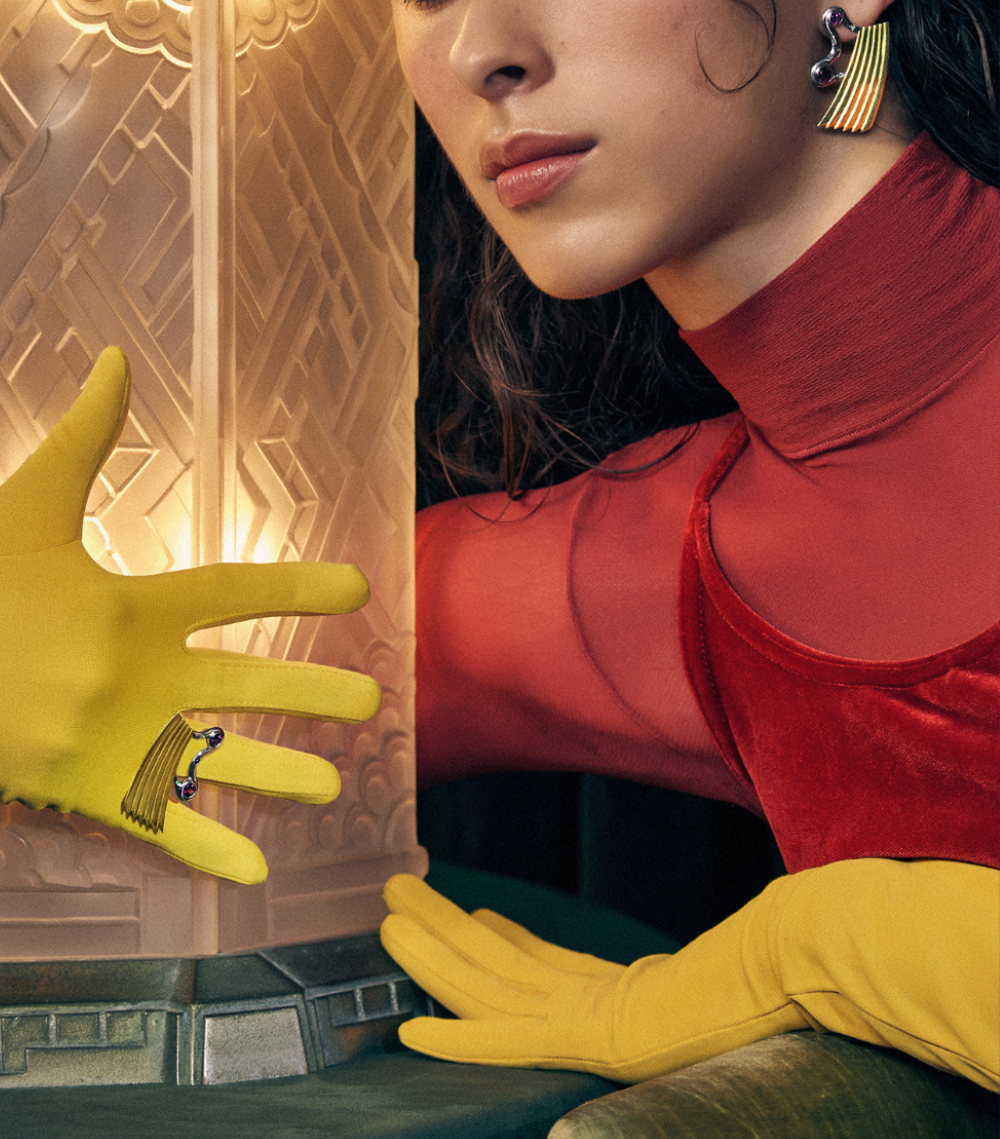 Anel Marta inspirado em formas naturais e linhas Art Déco.